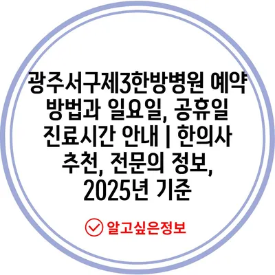 광주서구제3한방병원 예약 방법과 일요일, 공휴일 진료시간 공지 | 한의사 추천, 전연락 정보, 2025년 기준 에 대해 자주 묻는 질문 TOP 5