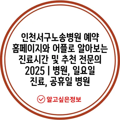 ✅ 인천서구노송병원의 예약 및 진료시간을 지금 바로 확인하세요!