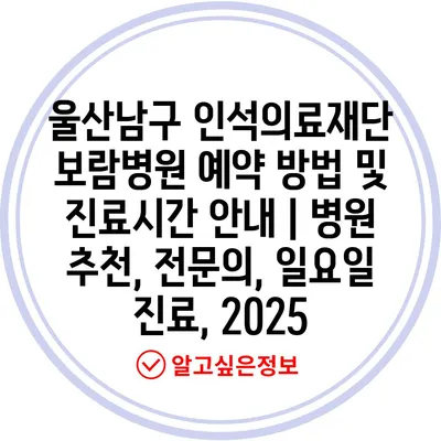 울산남구 인석의료재단 보람병원 예약 방법 및 진료시간 공지 | 병원 추천, 전연락, 일요일 진료, 2025 에 대해 자주 묻는 질문 TOP 5