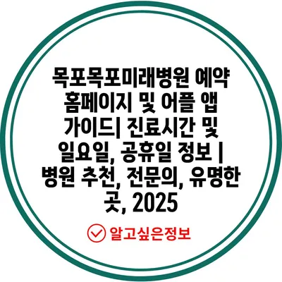 목포목포미래병원 예약 홈페이지 및 어플 앱 설명서| 진료시간 및 일요일, 공휴일 정보 | 병원 추천, 전연락, 유명한 곳, 2025 에 대해 자주 묻는 질문 TOP 5