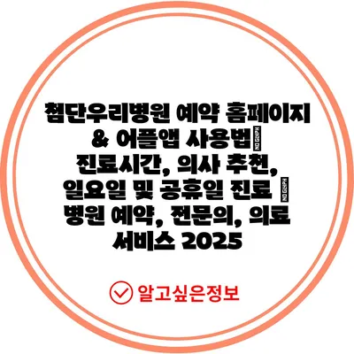 첨단우리병원 예약 홈페이지 & 어플앱 사용법| 진료시간, 의사 추천, 일요일 및 공휴일 진료 | 병원 예약, 전연락, 의료 서비스 2025에 대해 공지제공합니다.