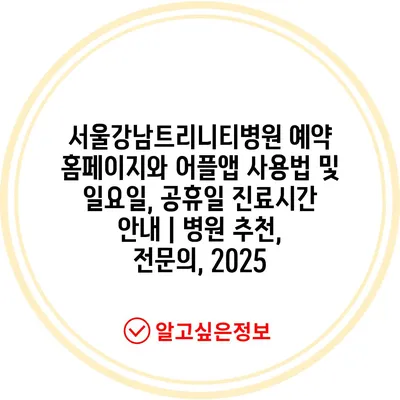 서울강남트리니티병원 예약 홈페이지와 어플앱 사용법 및 일요일, 공휴일 진료시간 공지 | 병원 추천, 전연락, 2025 에 대해 자주 묻는 질문 TOP 5