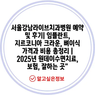 서울강남라이브치과병원 예약 및 후기| 임플란트, 지르코니아 크라운, 뼈이식 가격과 비용 총정리 | 2025년 원데이수면치료, 보험, 잘하는 곳” 에 대해 자주 묻는 질문 TOP 5