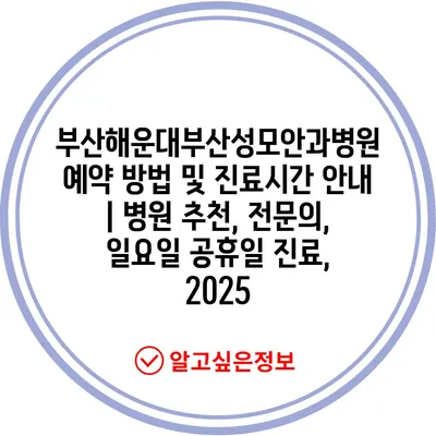 부산해운대부산성모안과병원 예약 방법 및 진료시간 공지 | 병원 추천, 전연락, 일요일 공휴일 진료, 2025 에 대해 자주 묻는 질문 TOP 5
