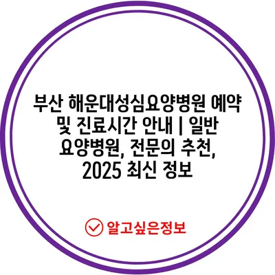 부산 해운대성심요양병원 예약 및 진료시간 공지 | 일반 요양병원, 전연락 추천, 2025 최신 정보 에 대해 자주 묻는 질문 TOP 5