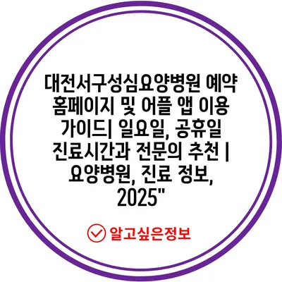 대전서구성심요양병원 예약 홈페이지 및 어플 앱 이용 설명서| 일요일, 공휴일 진료시간과 전연락 추천 | 요양병원, 진료 정보, 2025″ 에 대해 자주 묻는 질문 TOP 5