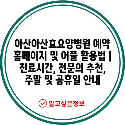 ✅ 아산아산효요양병원 예약 시스템을 간편하게 알아보세요.