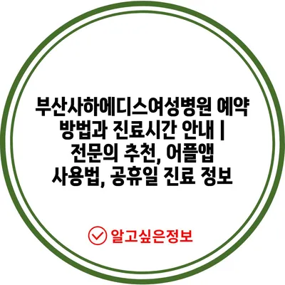 ✅ 부산사하에디스여성병원의 진료시간과 예약 방법을 지금 바로 알아보세요.